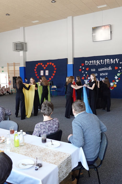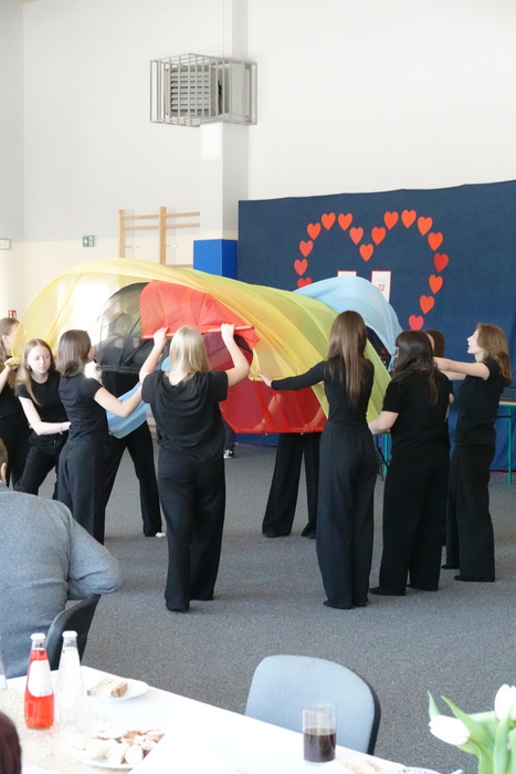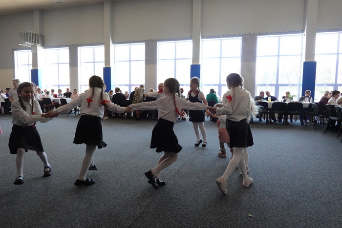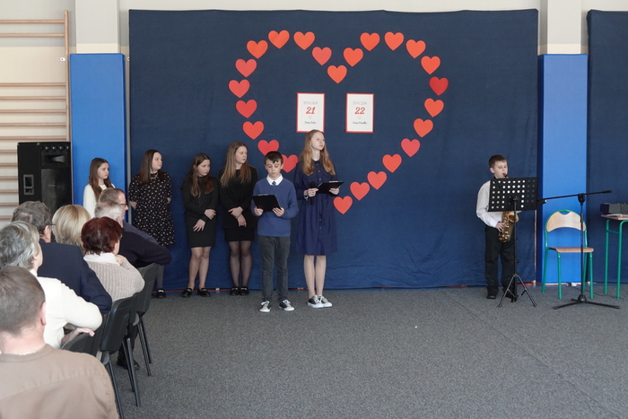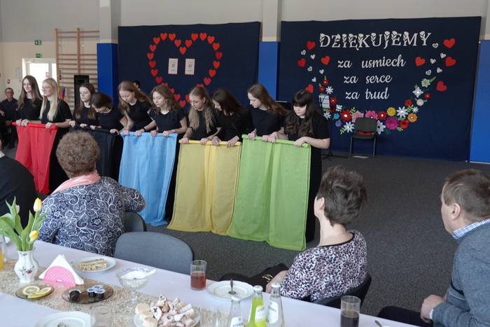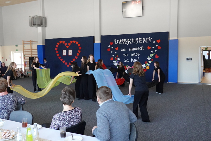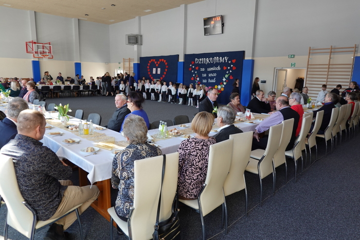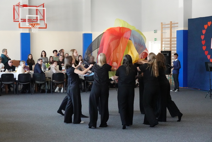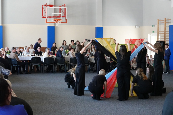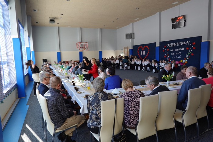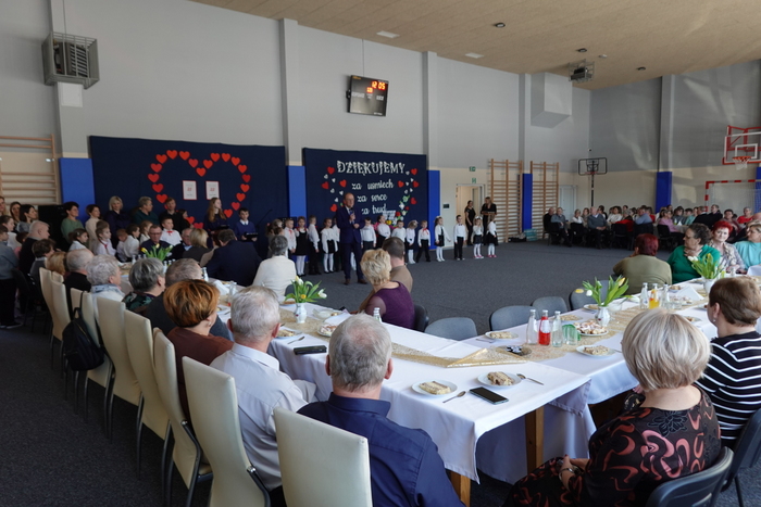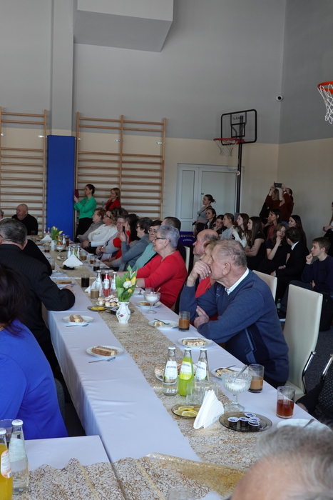 Na zakończenie uroczystości publiczność podziwiała pokaz taneczny uczennic klas VII i VIII, który został nagrodzony gromkimi brawami. Finałowym i niezwykle wzruszającym momentem był wspólne odśpiewanie „Sto lat” dla wszystkich Babć i Dziadków, przy akompaniamencie Kornela Hałgasa, który dopełnił uroczystą atmosferę spotkania.