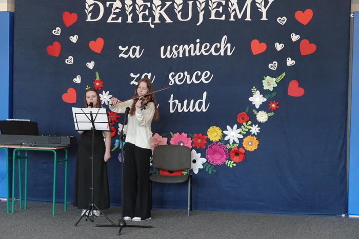 Dużym zainteresowaniem cieszył się pokaz talentów, w którym udział wzięli uczniowie klas III- VIII. Młodzi artyści zaprezentowali swoje pasje i umiejętności, m.in. taniec współczesny, śpiew oraz grę na gitarze, saksofonie, akordeonie, pianinie i skrzypcach, wzbudzając uznanie i zachwyt publiczności.