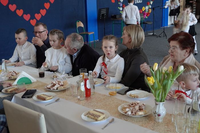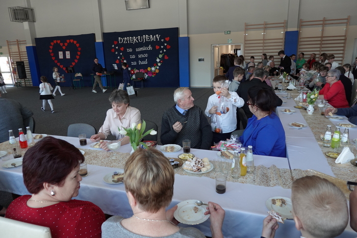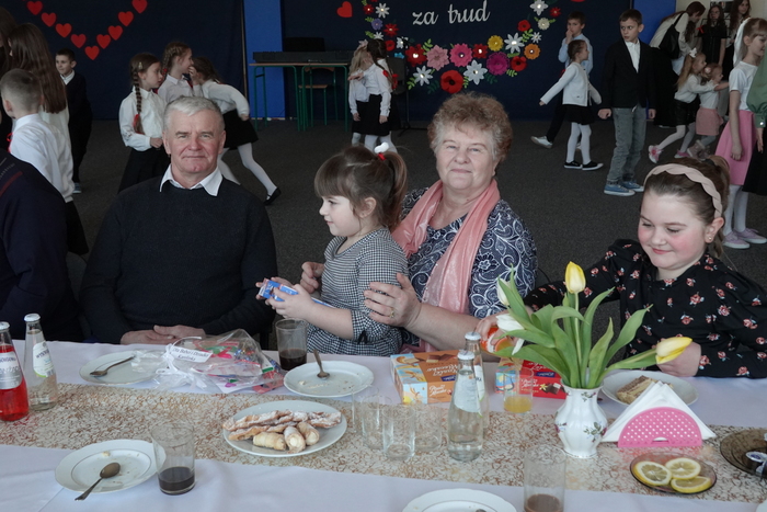 Dzięki zaangażowaniu Rady Rodziców przygotowany został przepyszny poczęstunek dla Babć i Dziadków, który sprzyjał rozmowom i wspólnemu spędzaniu czasu w miłej, rodzinnej atmosferze.
