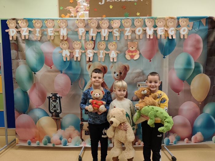 25 listopada świętowaliśmy jedno z najbardziej lubianych szkolnych wydarzeń – Dzień Pluszowego Misia. Tego dnia w naszym przedszkolu i szkole pojawiło się mnóstwo mięciutkich, kolorowych i wyjątkowych przytulanek, które towarzyszyły dzieciom przez cały dzień. Wspólnie bawiliśmy się, tańczyliśmy oraz poznawaliśmy misiowe historie. Dzieci wykonały pracę plastyczną w, której to misie grały główną rolę. Nie zabrakło również pamiątkowych zdjęć. Dzieci chętnie pozowały ze swoimi pluszakami, tworząc urocze, pełne radości fotografie, które z pewnością będą piękną pamiątką z tego wyjątkowego dnia. Był to dzień pełen uśmiechu, radości i ciepłej, misiowej atmosfery.