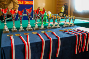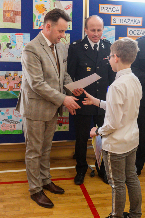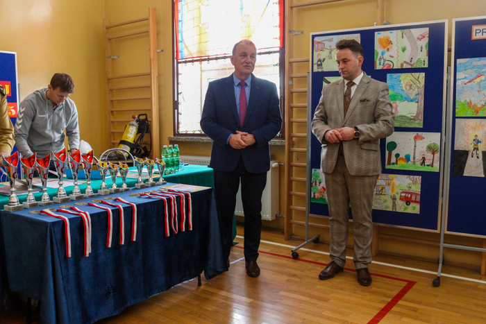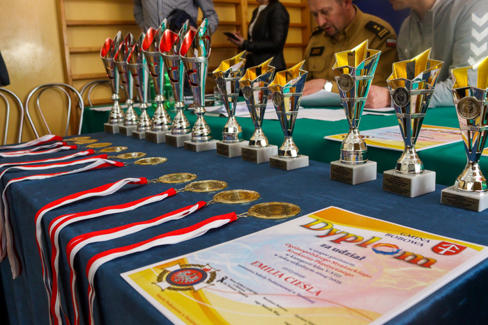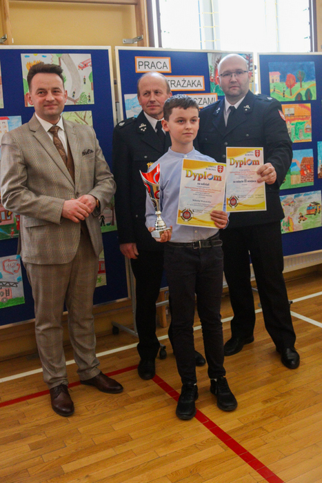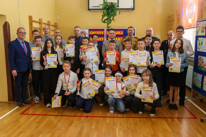 Zwycięscy otrzymali z rąk Burmistrza Gminy Marcina Wąsa, bryg. Dariusza Surmacza, dha Artura Forczka oraz dyrektora szkoły w Stróżnej – Andrzeja Płazińskiego puchary a wszyscy uczestnicy medale i dyplomy.