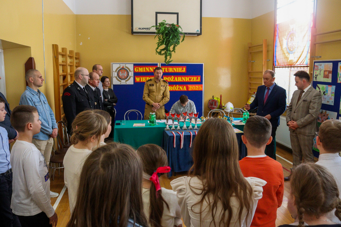 Dnia 03.04.2025r. w SP Stróżnej odbyły się Gminne eliminacje Ogólnopolskiego Turnieju Wiedzy Pożarniczej „Młodzież zapobiega pożarom”.