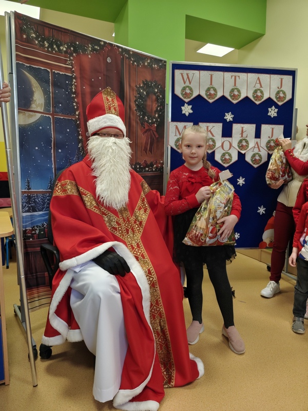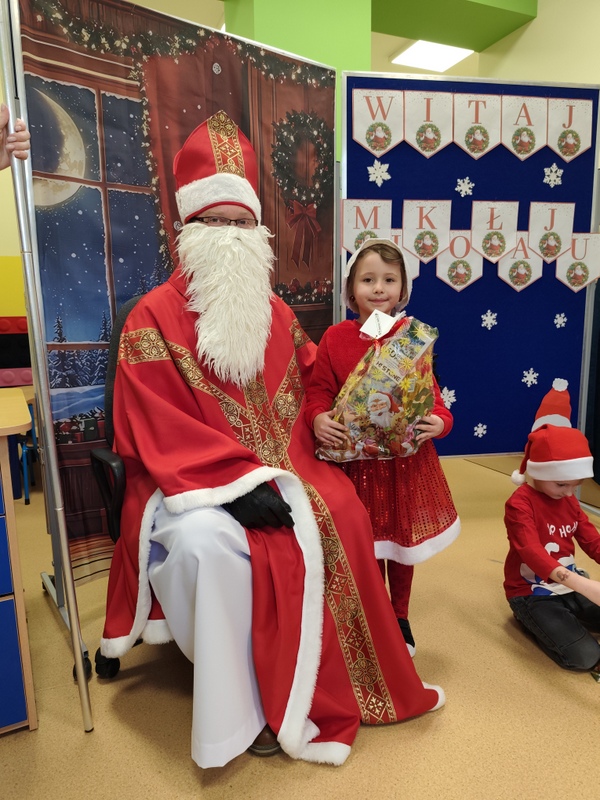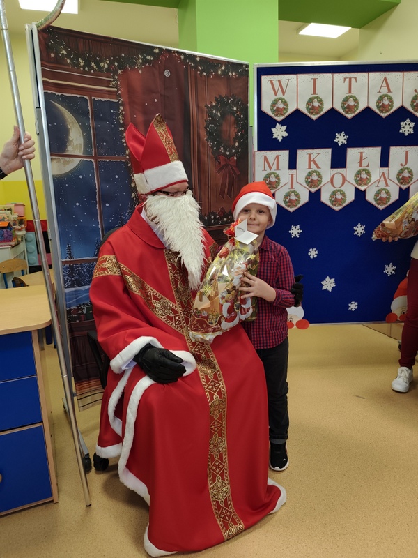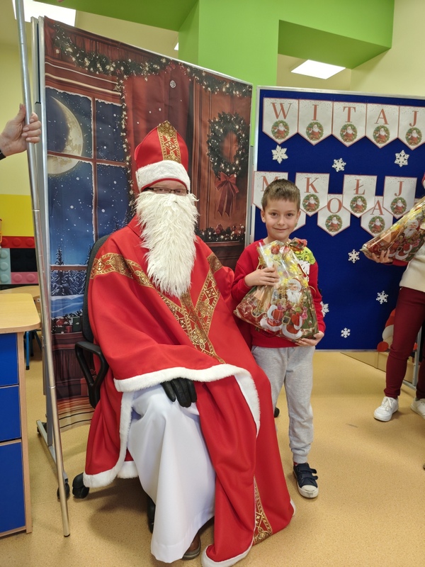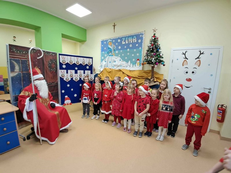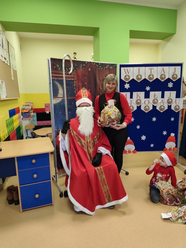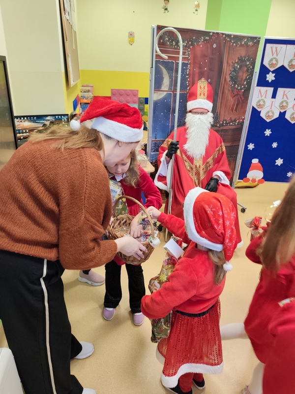 wszystkie dzieci. Dzieci z ogromną radością uczestniczyły w spotkaniu, zadając Mikołajowi pytania i dzieląc się swoimi świątecznymi marzeniami. W salach panowała ciepła, świąteczna atmosfera, a wspólne chwile dostarczyły dzieciom wiele radości i niezapomnianych wrażeń. Wizyta Świętego Mikołaja była dla najmłodszych wyjątkowym wydarzeniem, które wprowadziło wszystkich w magiczny klimat zbliżających się Świąt Bożego Narodzenia.