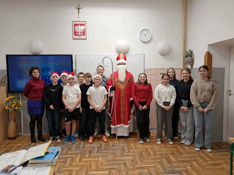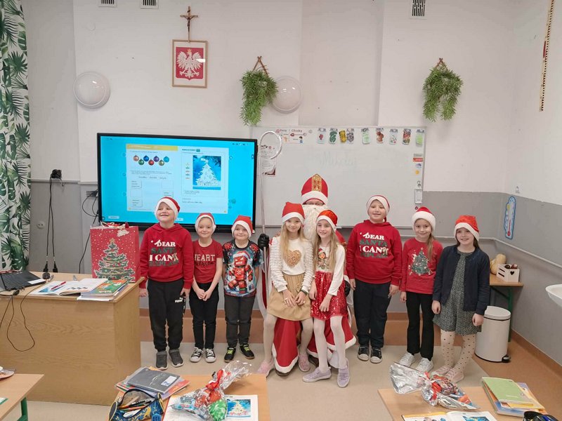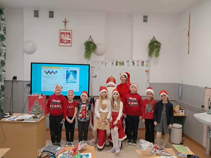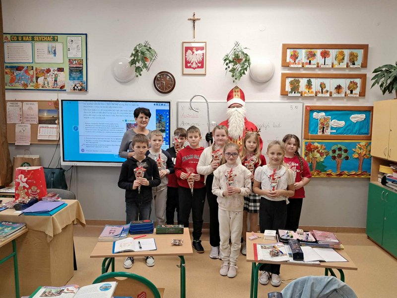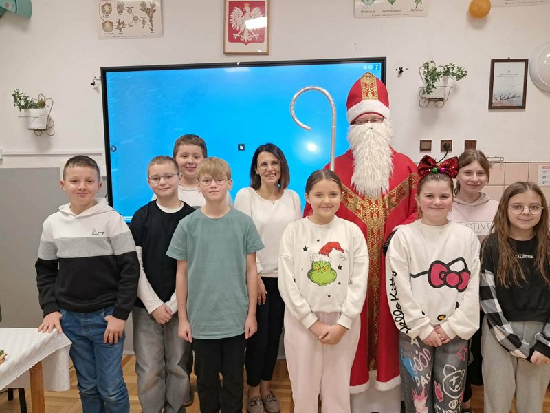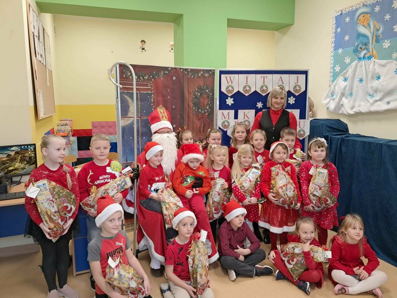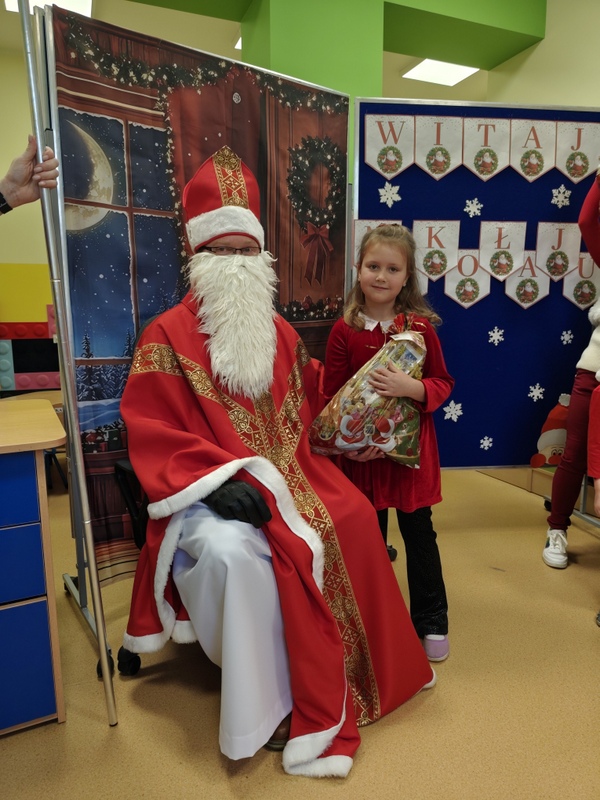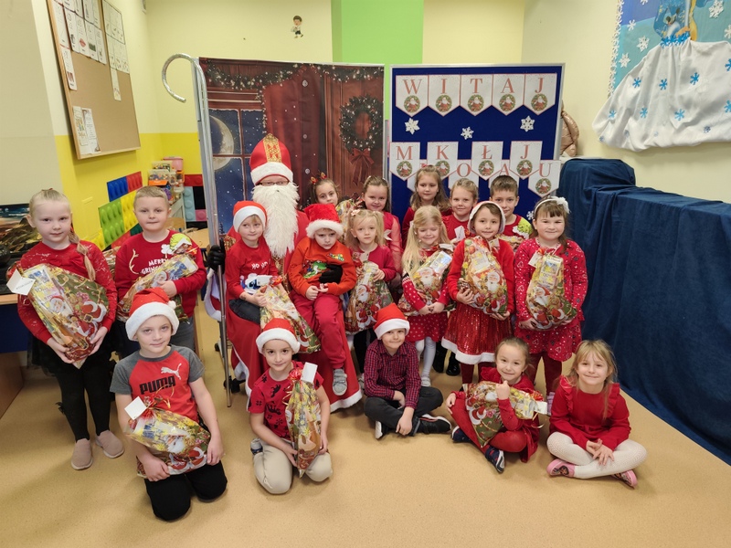 5 grudnia w oddziale przedszkolnym oraz klasach młodszych odbyła się długo wyczekiwana wizyta Świętego Mikołaja. Już od rana wśród dzieci panowała radosna atmosfera i podekscytowanie związane z pojawieniem się wyjątkowego gościa. Mikołaj przybył z dużym workiem pełnym prezentów i serdecznym uśmiechem przywitał