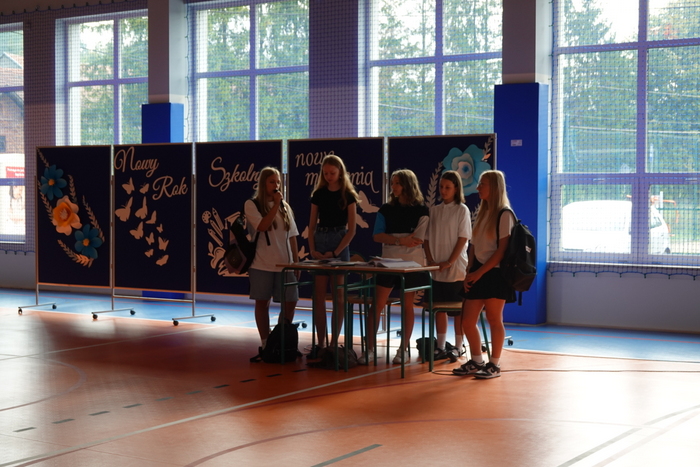 Po zakończonym nabożeństwie wszyscy udali się do szkoły, gdzie po raz pierwszy na nowej hali gimnastycznej odbyła się krótka akademia przygotowana przez uczennice z klasy VIII pod kierunkiem pani Wioletty Bogusz i pani Renaty Chmielowskiej.