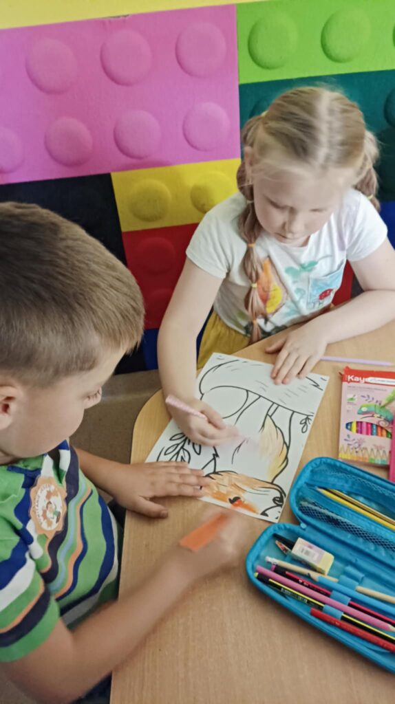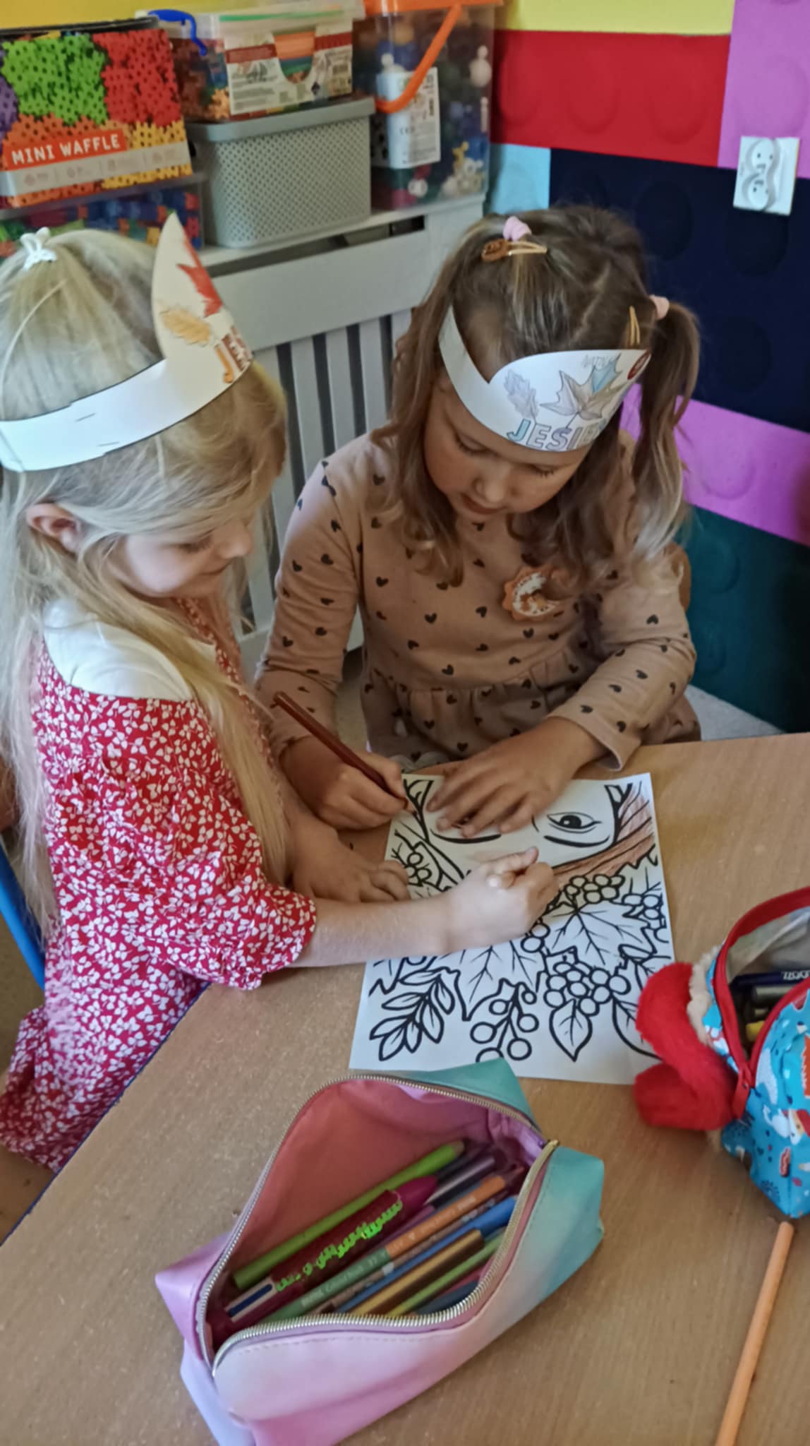 wyobraźnię, sprawność manualną oraz umiejętność współpracy: wspólnie kolorowały portret