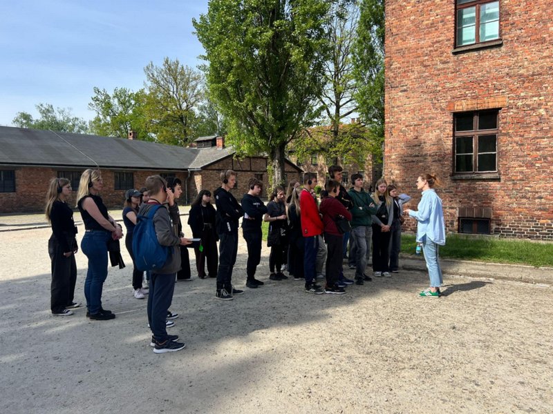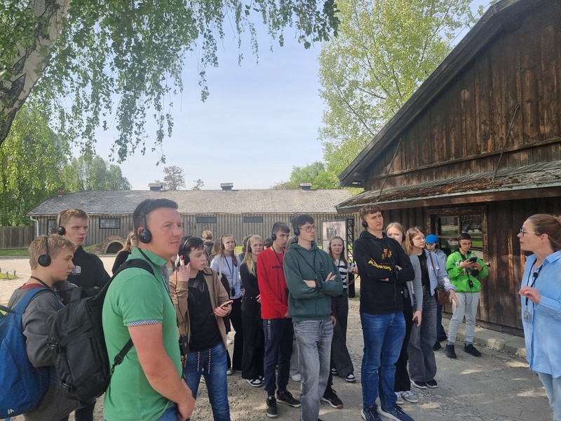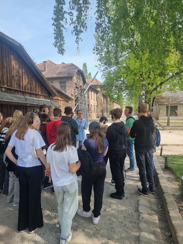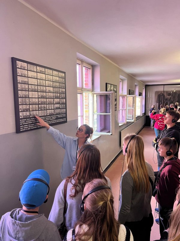 Niezwykle istotnym elementem wizyty były także opowieści przewodniczki, która w przejmujący sposób przybliżyła historię obozu oraz losy jego więźniów. Jej słowa uzupełniały i pogłębiały obraz tego, co uczniowie mogli zobaczyć na własne oczy, tworząc pełne i bolesne świadectwo przeszłości.