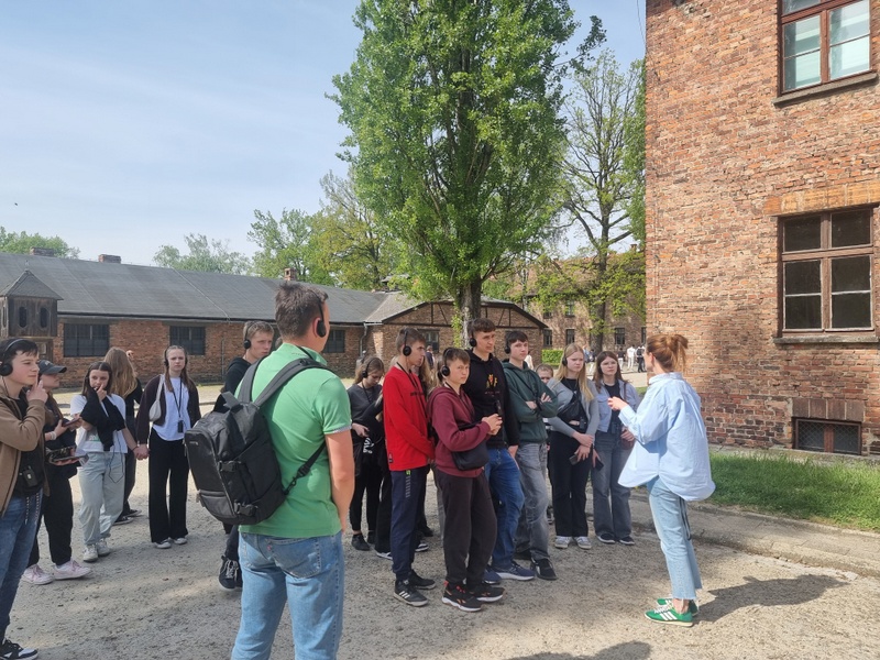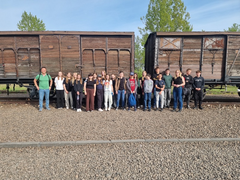 Dnia 29 kwietnia 2025 roku uczniowie klas siódmych i ósmych naszej szkoły, pod opieką pani Renaty Chmielowskiej oraz pana Krzysztofa Płazińskiego, udali się na wycieczkę do byłego niemieckiego nazistowskiego obozu koncentracyjnego i zagłady Auschwitz oraz Auschwitz II – Birkenau. Celem wyjazdu była szczególna lekcja historii – w miejscu, które stało się symbolem niewyobrażalnego ludzkiego cierpienia i okrucieństwa.