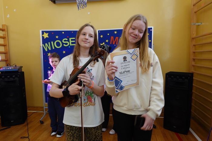 III miejsce – Emilia Ligęzowska – kl. VII kategoria gra na instrumencie oraz Klaudia Mucha – kl. VIII kategoria wokal.